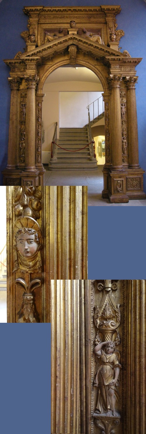 Tuscan door frame, with details of têtes espagnolettes on inner edge & angel on centre frieze