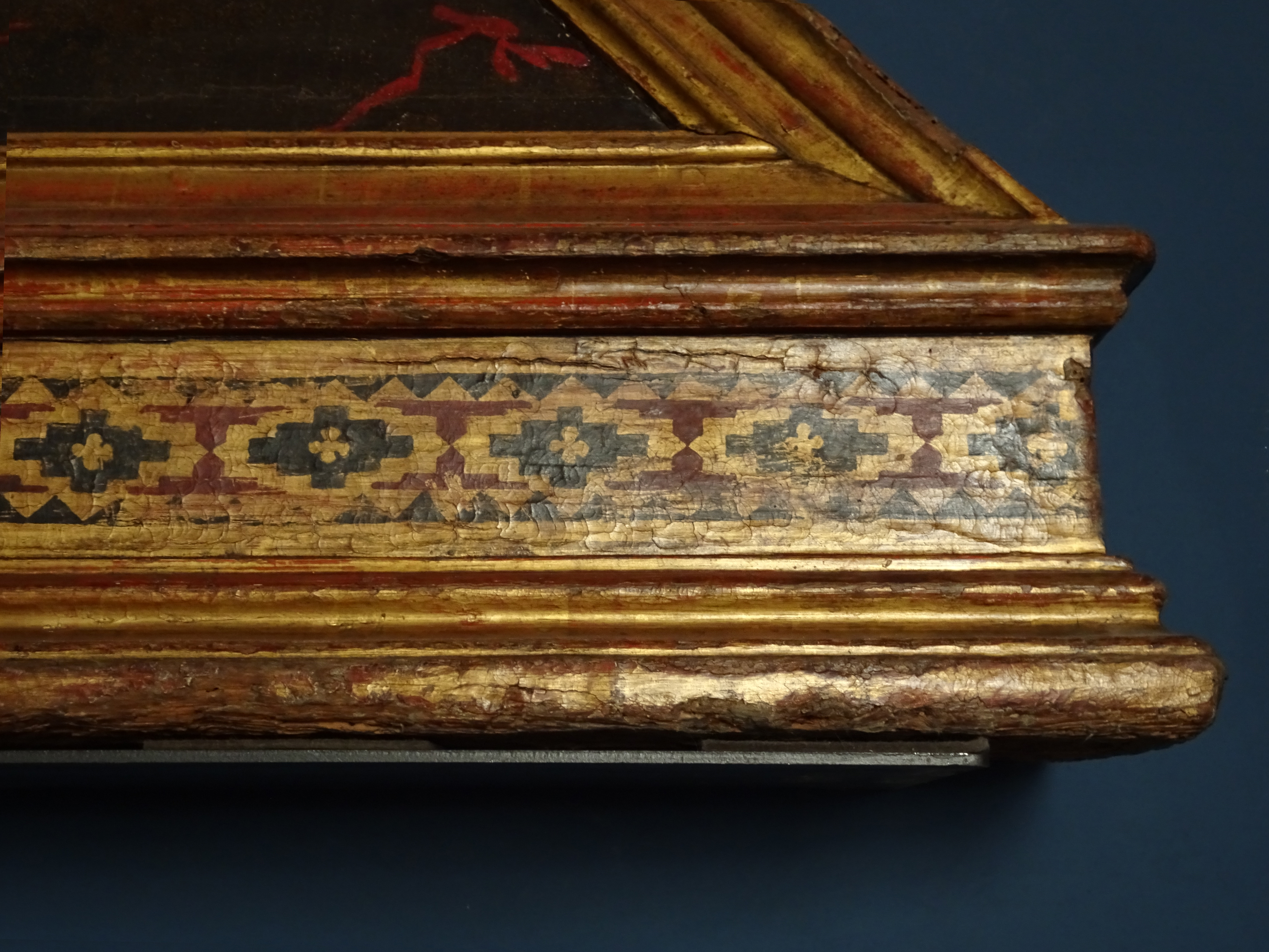 Frames also seem to have been built from scratch as necessary. For example, detailed technical analysis has revealed that the large Crucifixion, which is one of the most striking works at the Museo Bardini, was constructed from a number of separate panels by both Bernardo Daddi and, potentially, an artist from the school of Orcagna. Instead of re-using existing frames from Bardini’s collection, however, in this case the polylobed frame appears to have been built especially for the reconstructed work (with the possible exception of the predella).